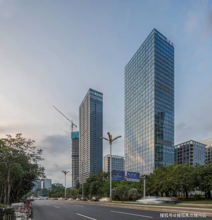 -设计风外立面采用高品质的玻璃幕墙和金属材质,不仅外观大气美观,而且具有良好的采光和通风效果。同时,项目内部规划了大量的绿色空间和景观小品,营造出舒适宜人的办公和生活环境。