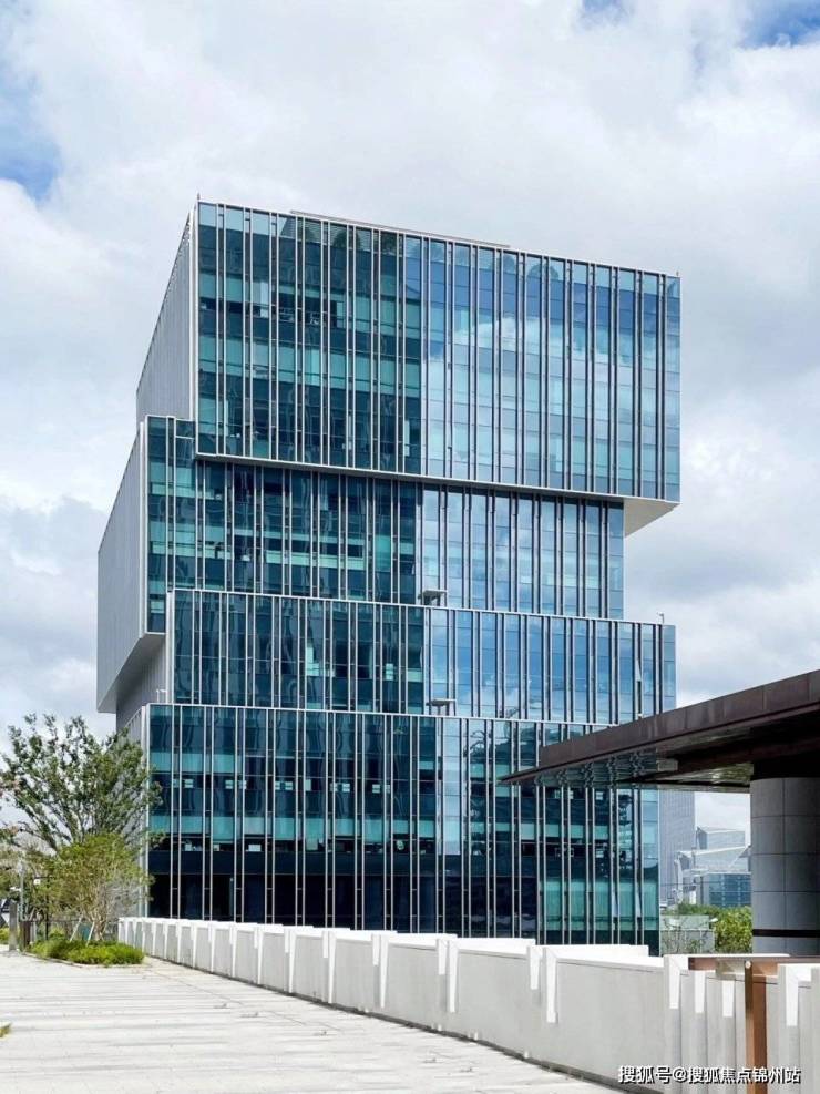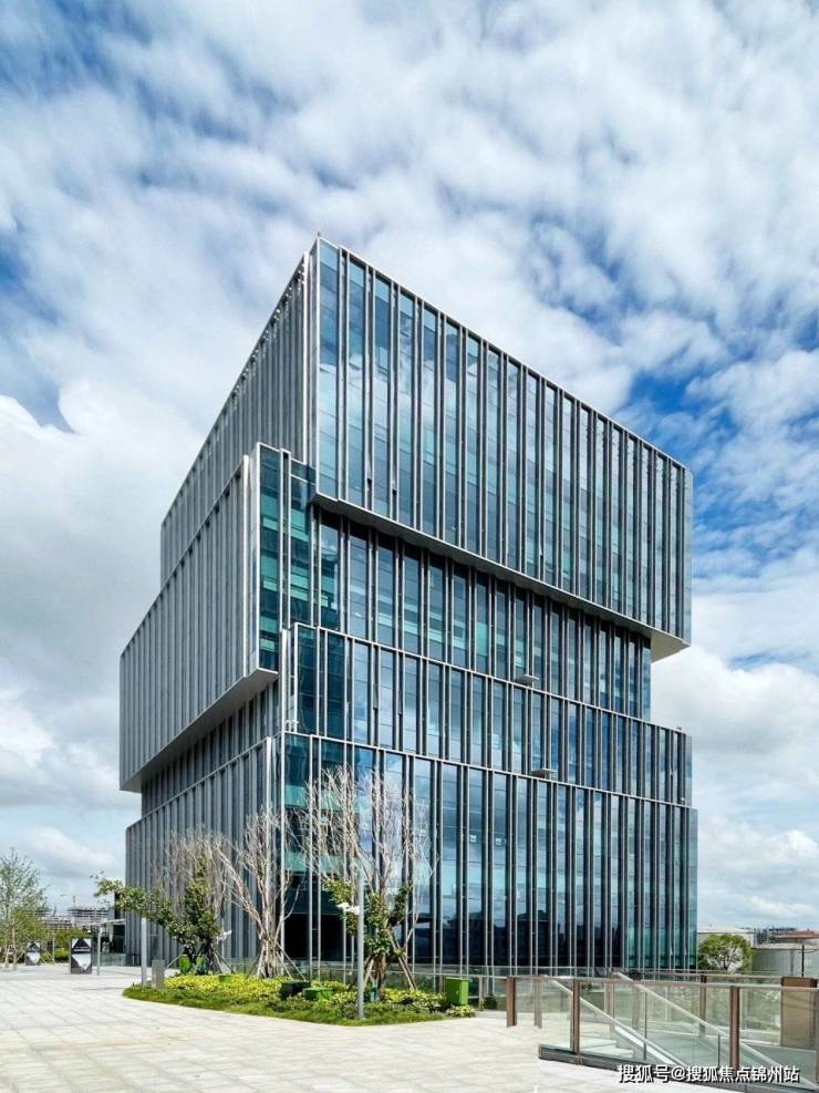 - 建筑造型:两座塔楼立面造型方正规整、简洁干练,加强了单元的完整度和挺拔感。塔楼被横向剖切成多个盒子,进行错位叠加,呈现出变化的节奏感和层次分明的立体感。